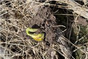 Figure 1 Soybean seedlings, one rotten and one slow to emerge, from a soybean field with extensive stand loss due to seedling disease.